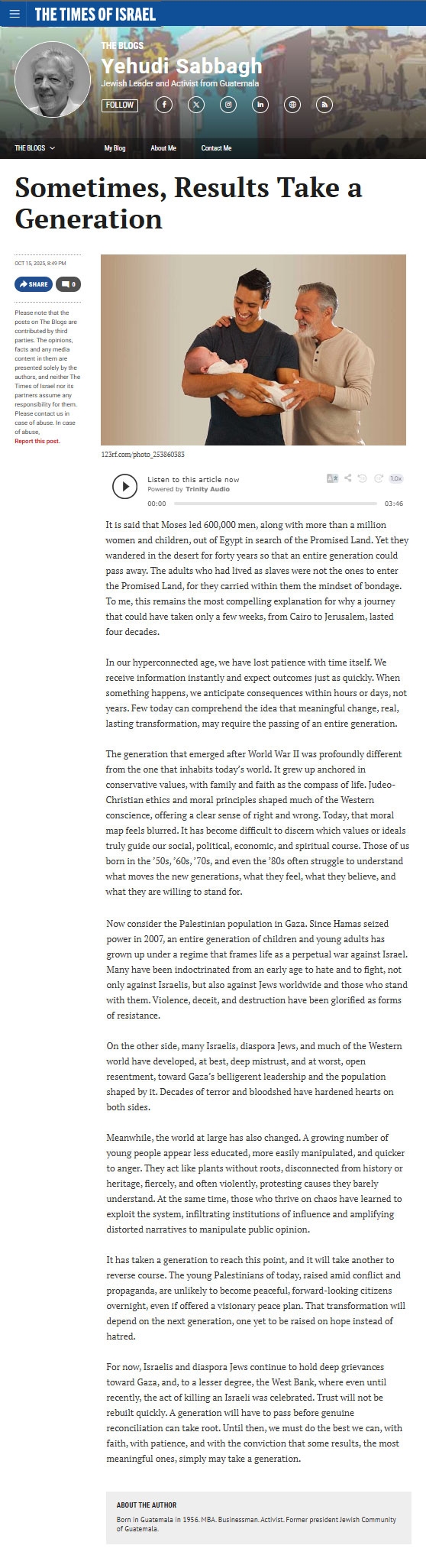 Sometimes, Results Take a Generation (Times of Israel - 15 Oct 2025)