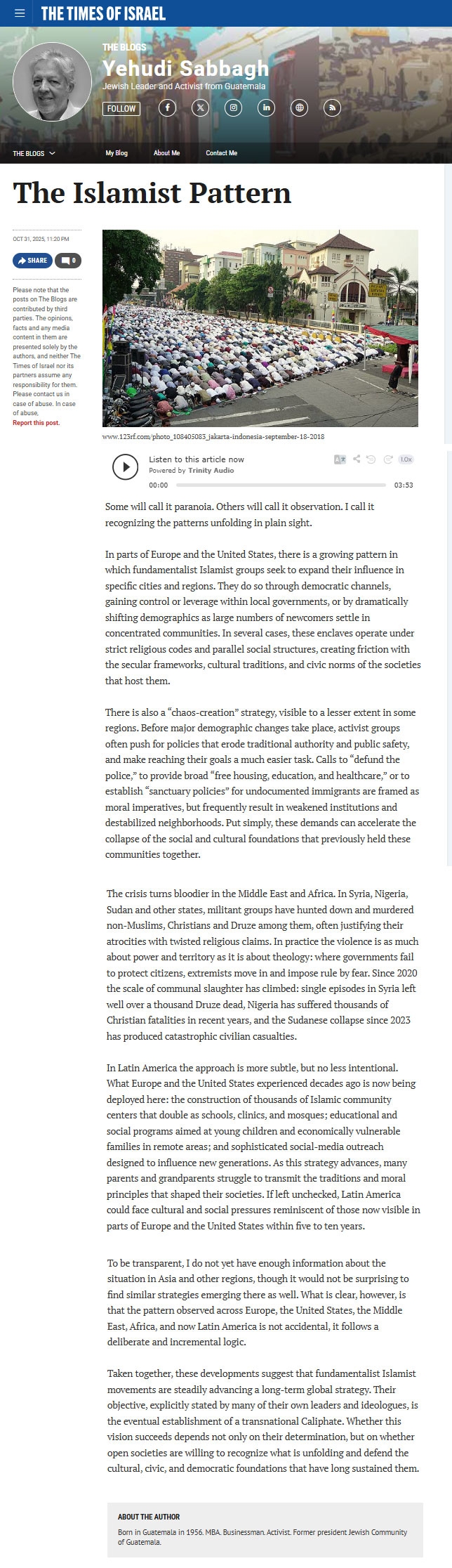The Islamist Pattern (Times of Israel - 31 Oct 2025)