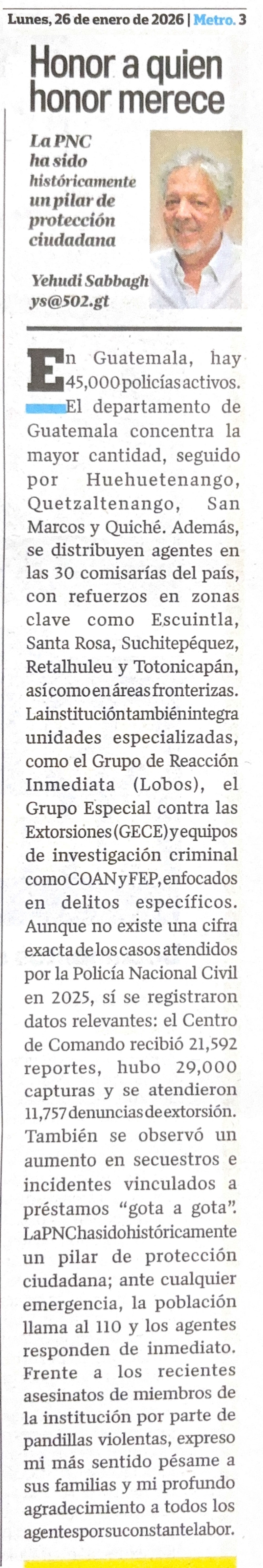 < Más Articulos : Honor a quien honor merece (Nuestro Diario - 26 ene 2026)