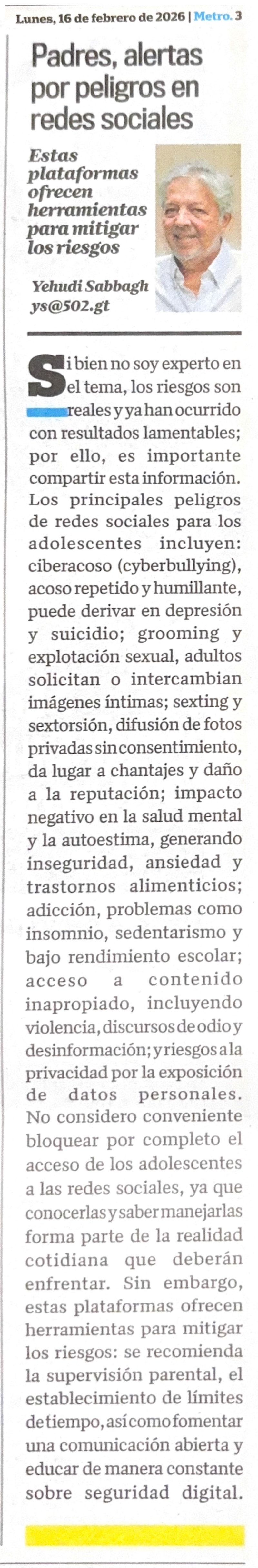 Padres, alertas por peligros en redes sociales (Nuestro Diario - 16 Feb 2026)