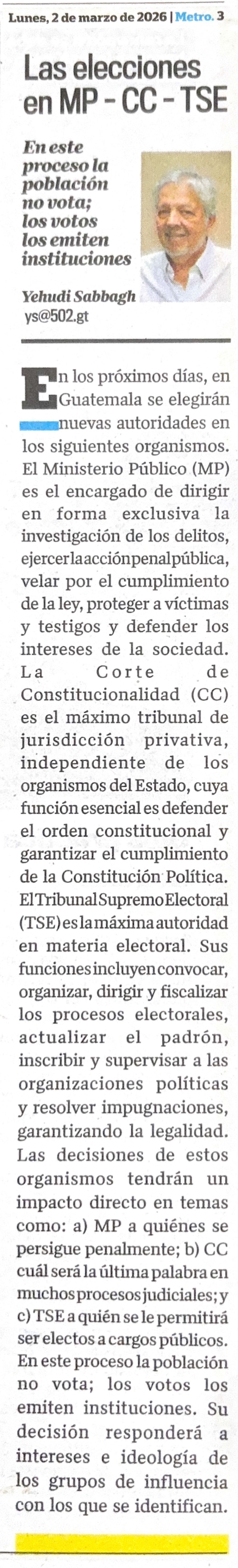 < Más Articulos : Las elecciones en MP - CC - TSE (Nuestro Diario - 2 Mar 2026)