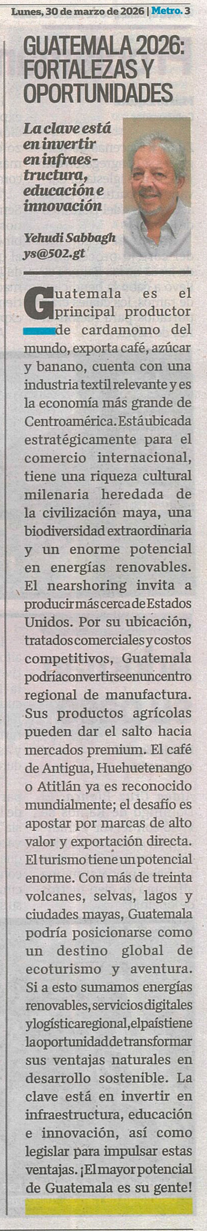 < Más Articulos : GUATEMALA 2026: FORTALEZAS Y OPORTUNIDADES (Nuestro Diario - 30 Mar 2026)