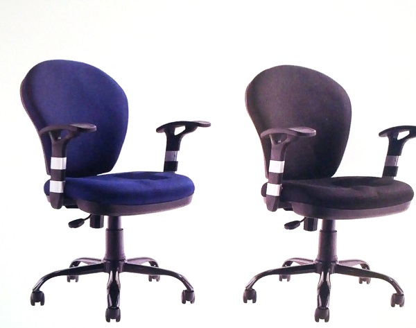 * Silla secretarial con brazos * forro en tela * Disponible en color azul y negro * sistema de shock para graduar altura * Base metalica color negro con cinco rodos dobles