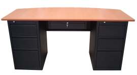 º ESCRITORIO EJECUTIVO COD. CT-3030 º TOP DE MELAMINA NEGRO/ CAOBA º ESTRUCTURA DE METAL COLOR NEGRO º CON PINTURA EN POLVO SECADO AL HORNO PARA MAYOR DURABILIDAD º MEDIDAS DE 1.68MTS. DE FRENTE X 0.76MTS. DE ALTO º PEDESTAL DE 3 GAVETAS DE CADA LADO CON LLAVE GENERAL