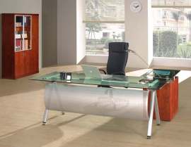 º ESCRITORIO EJECUTIVO Cod. DH-L2003 º TOP DE VIDRIO º FALDON DE METAL º INCLUYE GAVETERO º TOP DEL GAVETERO DE VIDRIO º GAVETERO DE MADERA CON LLAVE º 2.00MTS. DE FRENTE X 1.85MTS. DE FONDO