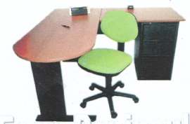 º ESCRITORIO SECRETARIAL PENINSULAR º ESTRUCTURA DE METAL COLOR NEGRO º TOP DE MELAMINA º PEDESTAL DE 3 GAVETAS CON LLAVE GENERAL º MEDIDAS DE 1.50MTS. DE FRENTE X 1.50MTS. DE FONDO